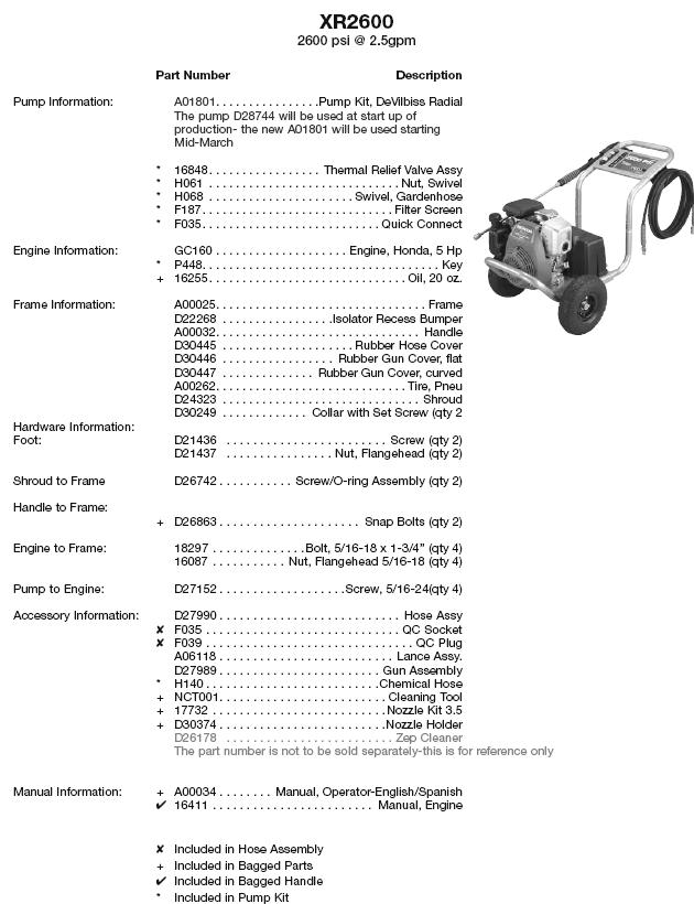 EXCELL XR2600 Parts List |