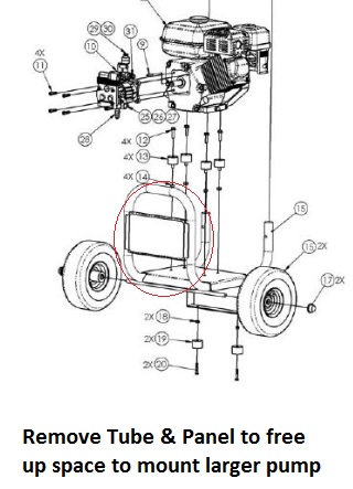 IF YOU WANT TO UPGRADE THE PUMP YOU WILL HAVE TO REMOVE THE PUMP SHIELD SINCE THE UPGADE Pumps are longer and otherwise would not fit.
