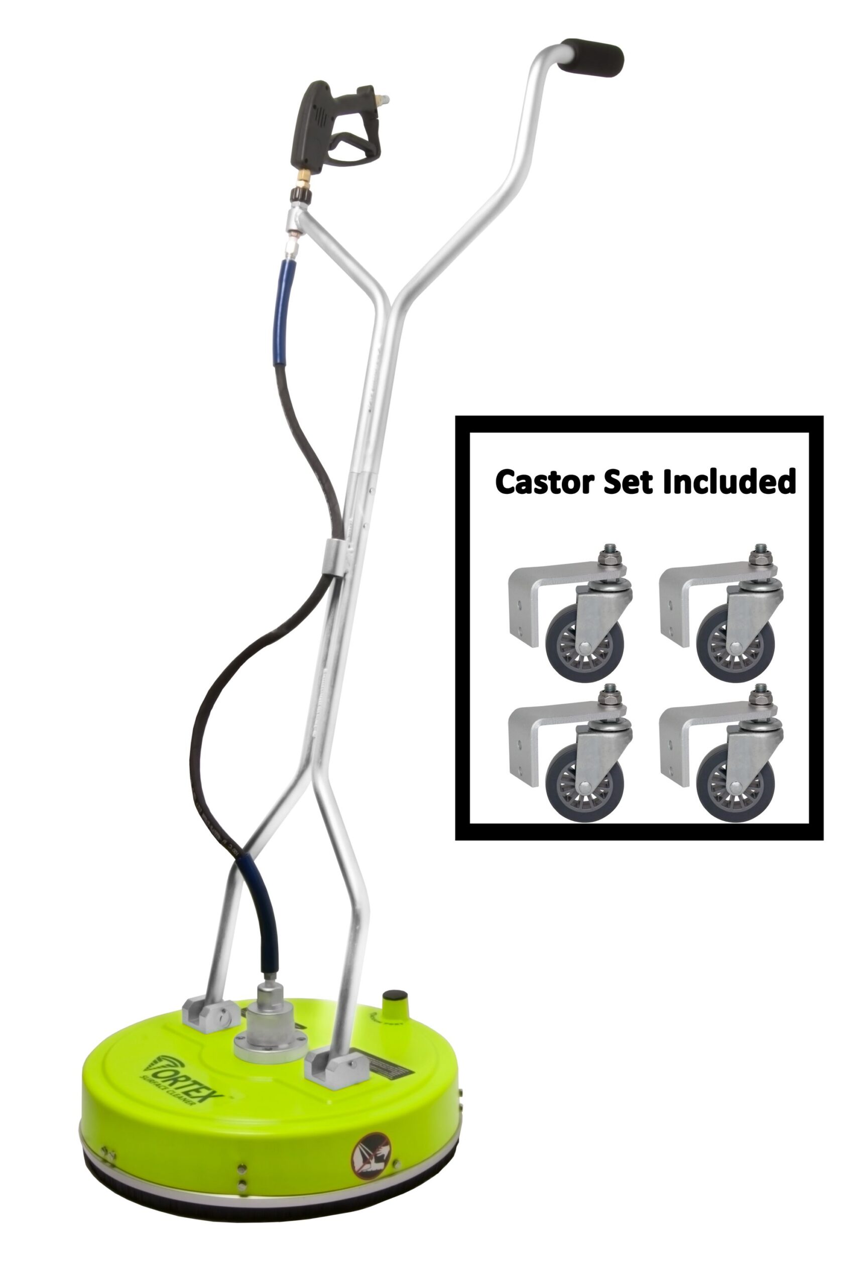 The NEWLY DESIGNED 20“ surface cleaner by Vortex will speed up any flat surface cleaning by up to 60% over a standard nozzle. Use it on hard surfaces such as patios, walkways, driveways, pool decks, sidewalks and parking lots. The 20″ Vortex Surface Cleaner will clean surfaces quickly, easily and evenly.